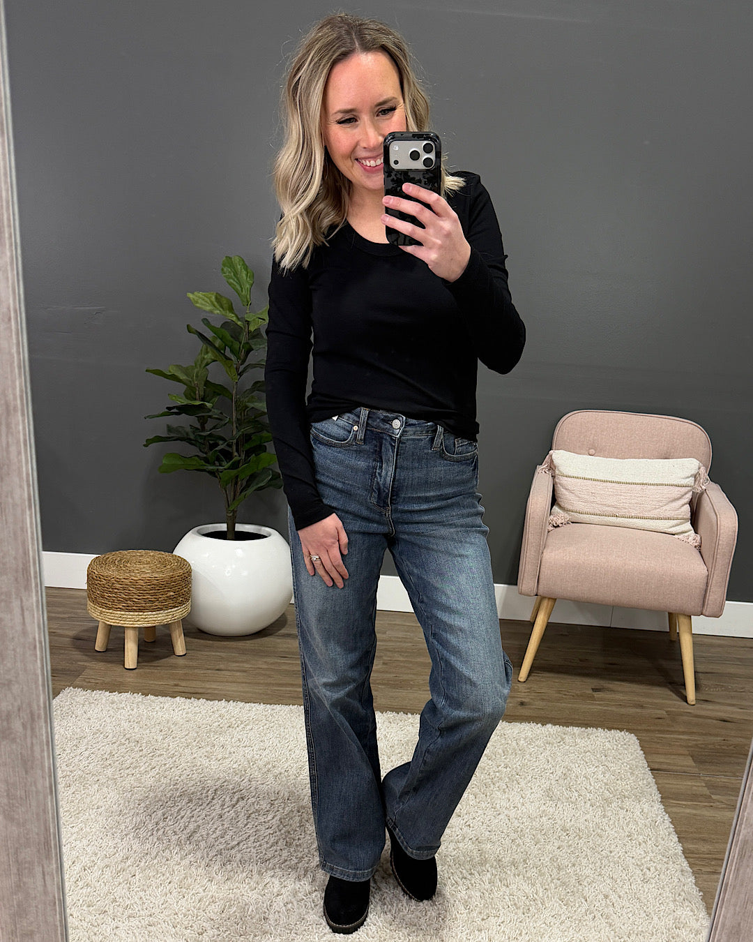 NEW! Jess Long Sleeve Knit Scoop Neck Top - Black