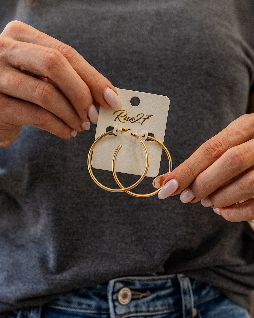Delicate Brass Hoop Earrings - Gold Trendy Wholesale