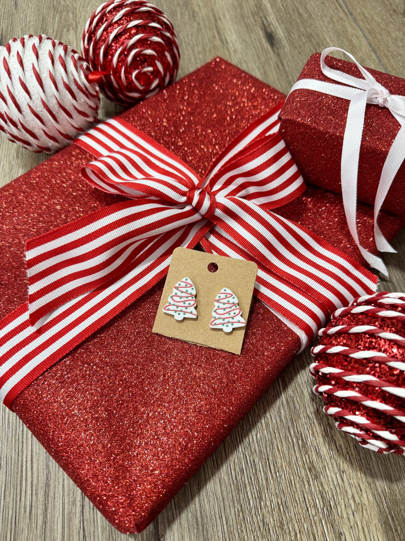 Christmas tree earrings with white & red frosting and green sprinkles - 1"
