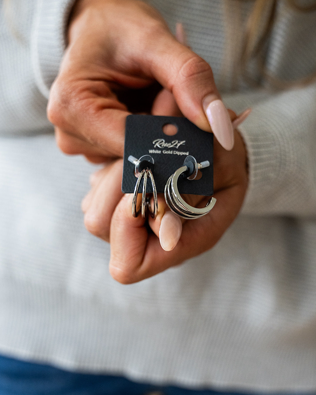 Three Line Layered Half Hoop Earrings - Color Options Available!