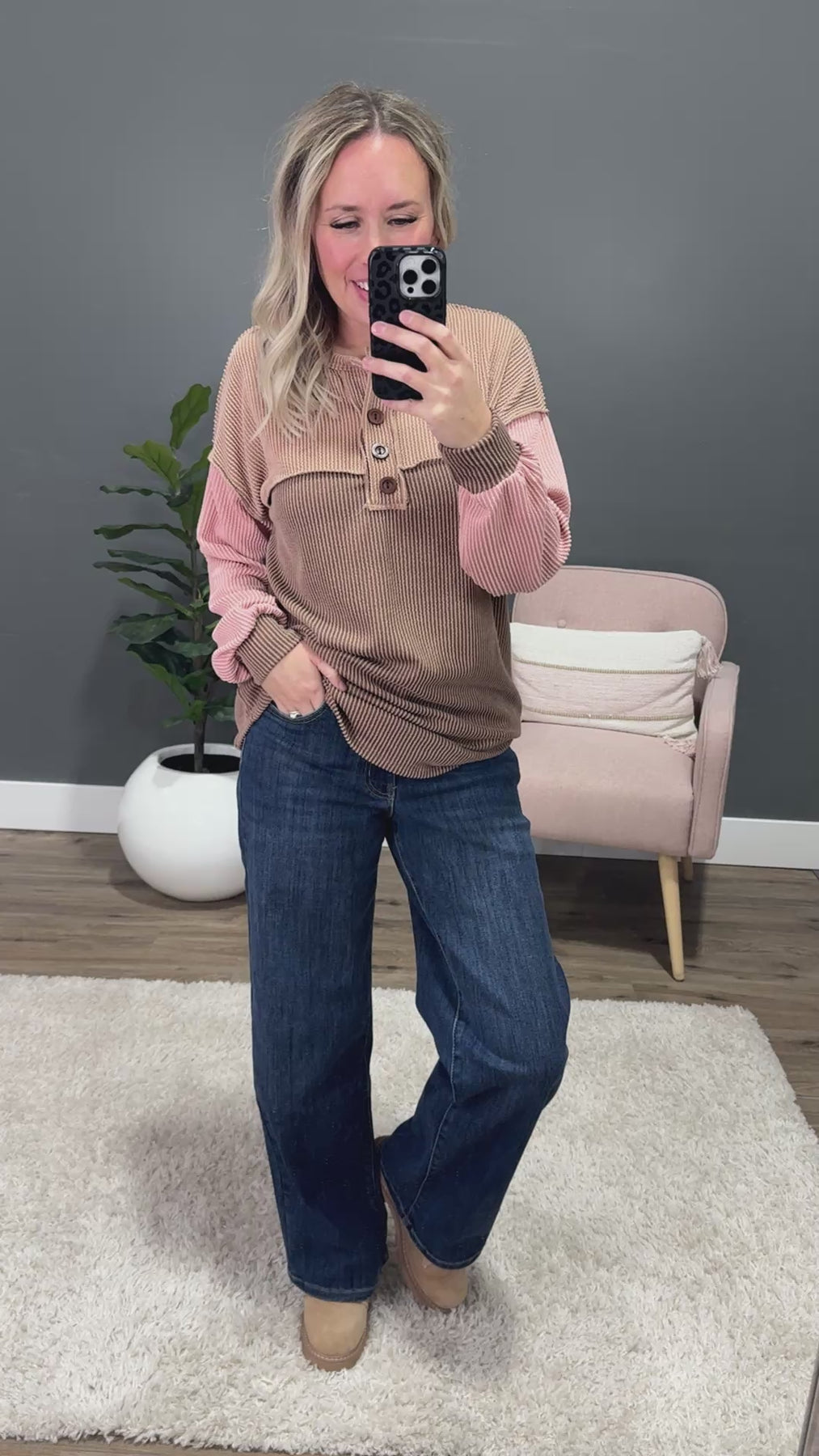 Andrea Corded Color Block Henley Top - Chestnut 7th Ray