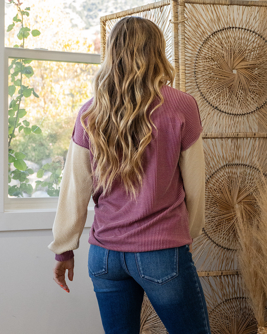 NEW! Andrea Corded Color Block Henley Top - Marsala