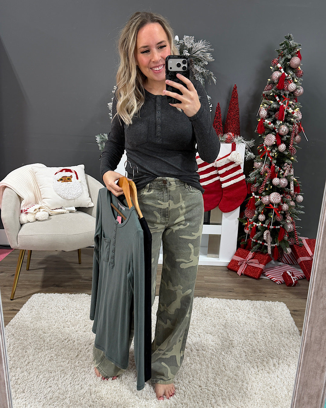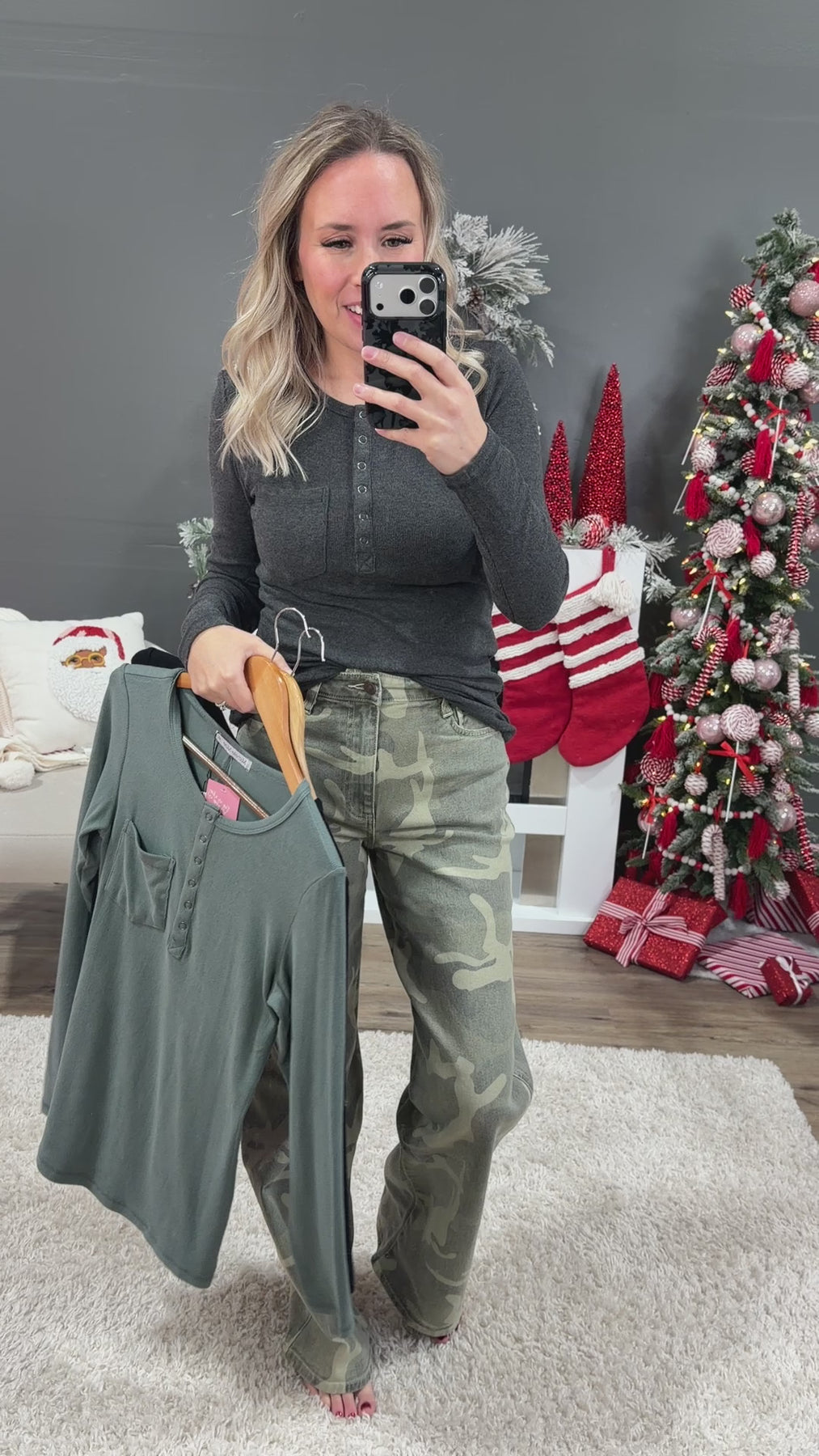 NEW! Georgia Henley Long Sleeve Top - Charcoal