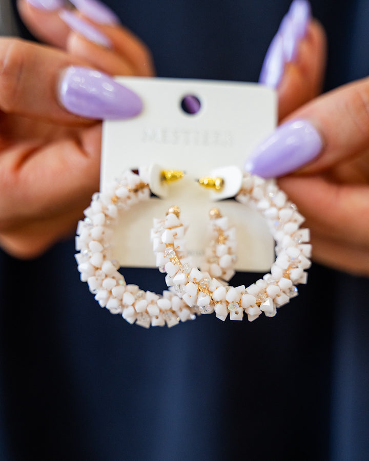 Hoops lined with ivory stones and clear crystal beads - 1.75"