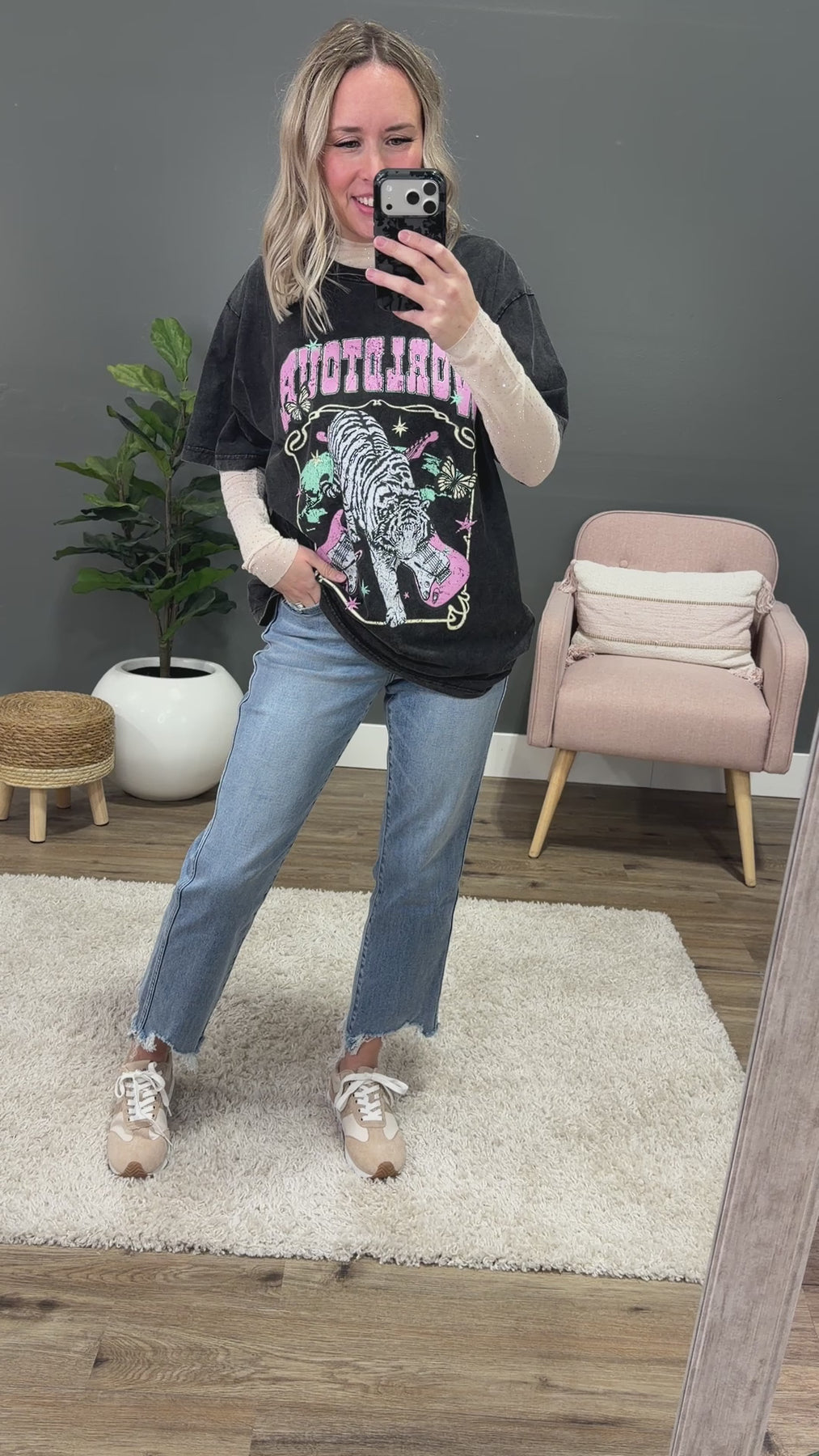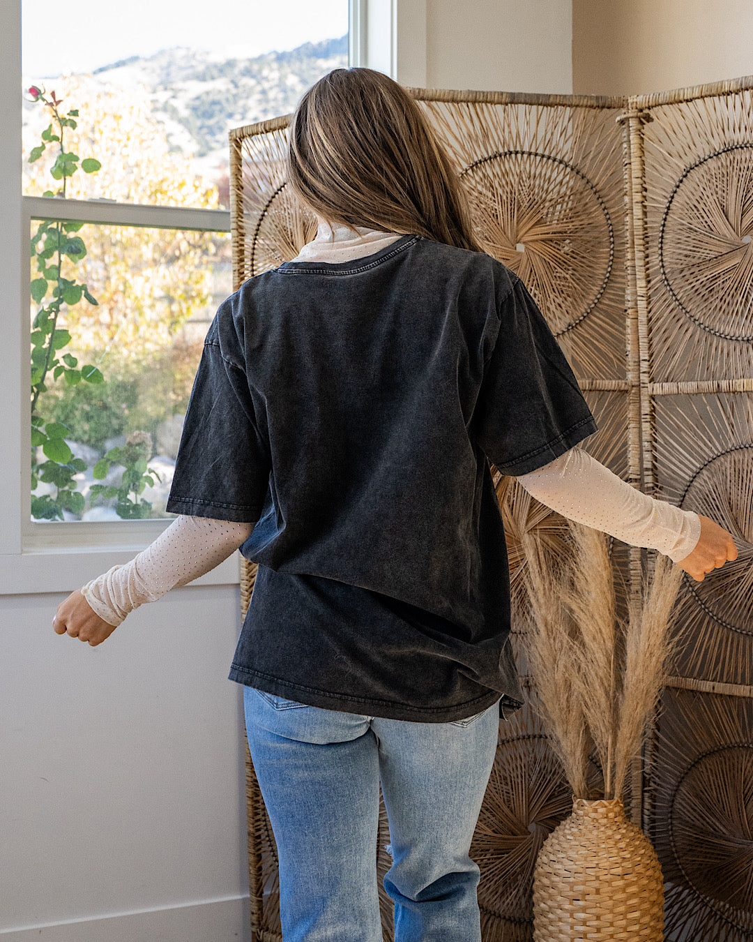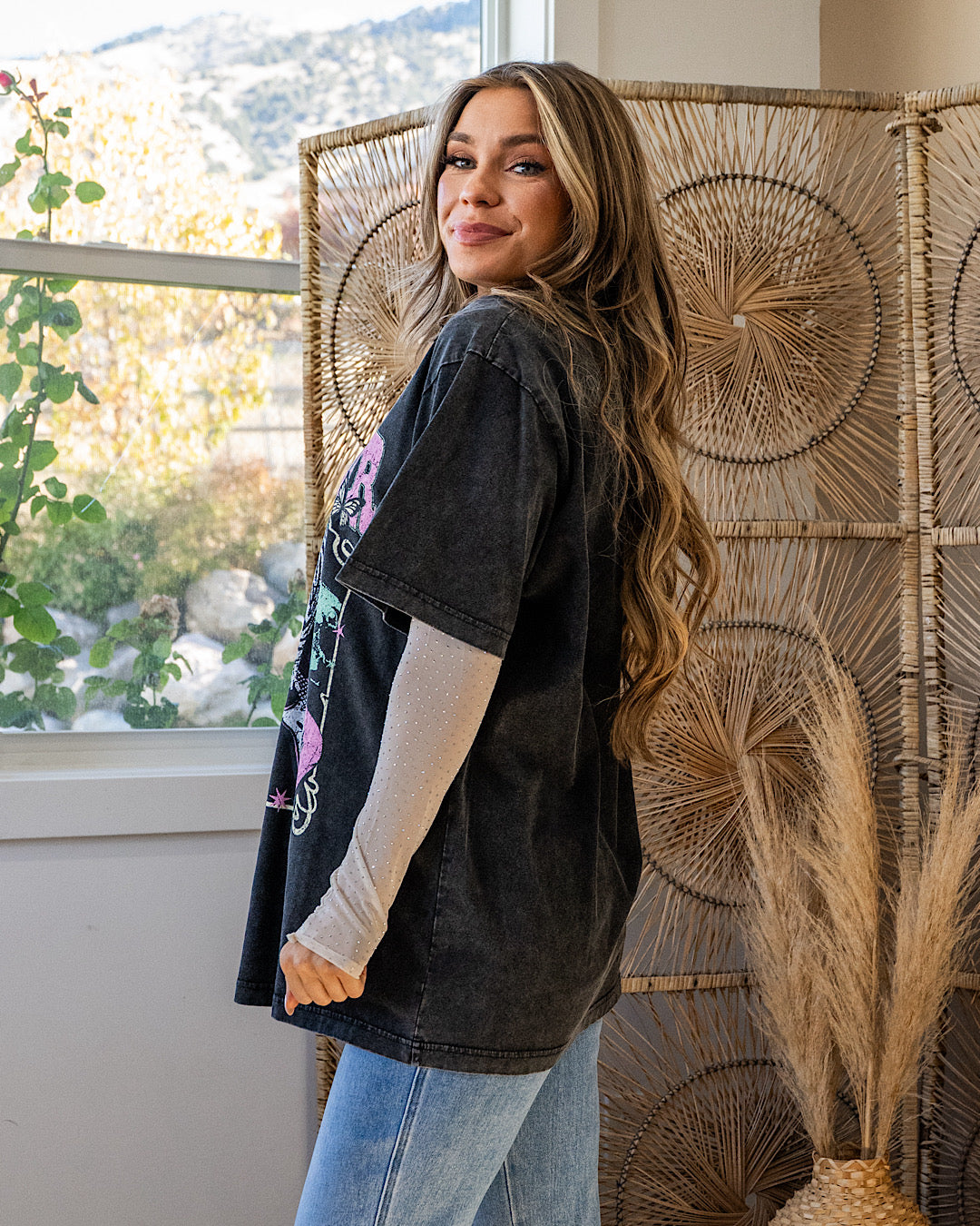 Oversized fit - size down if you are between sizes or prefer a more fitted top