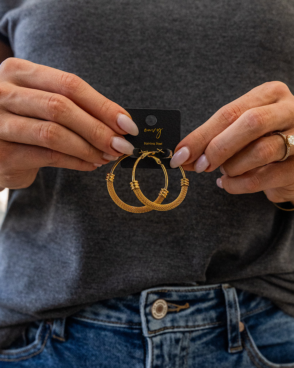 Stainless Steel Mesh Chain Hoop Earrings - Color Options Available!